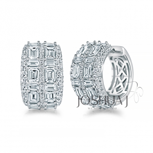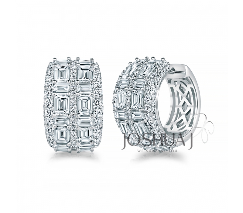 A symphony of light: 32 emerald-cut diamonds, a luxurious 5.91 carats, form double rows of intense brilliance. Framed by 176 round diamonds, 1.79 carats of pavé-set sparkle, these hoops offer a sophisticated interplay of facets and fire.