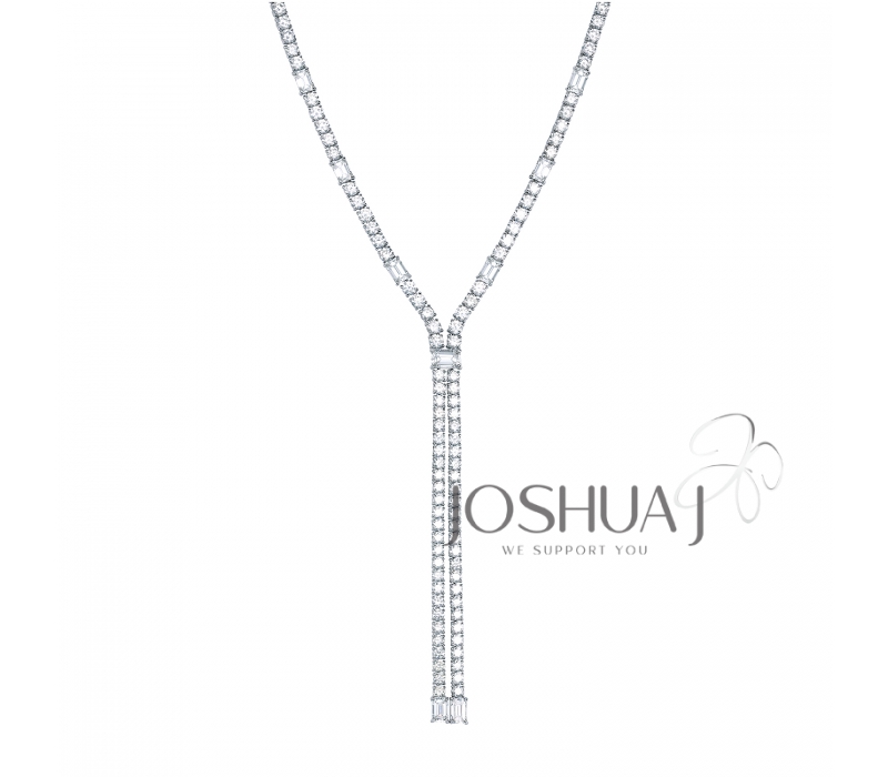 9 emerald-cut diamonds, G-H color and VS clarity, anchor this lariat necklace with 2.69 carats of refined brilliance. Accented by 192 round diamonds totaling 13.80 carats and set in 18k white gold, it’s a sleek expression of modern luxury.