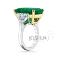 This exquisite piece of jewelry is the perfect way to express your love and commitment to that special someone in your life. This ring features a stunning Colombian 16.37ct F1 GIA Emerald center stone that captures the eye and glimmers with every movement. Flanked by two 1.94ct shield diamonds on either side, this ring is the epitome of elegance and luxury.