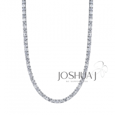 This sleek and glamorously thick lane of 48 intersecting Emerald cuts (14.72ct) and 48 Round Diamonds (8.92ct) weighs a grand total of 23.64cts.